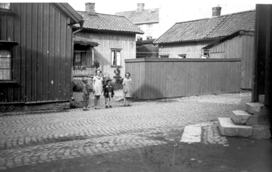 Tavagården. Hörnet Nygatan/Rödestensgatan. Tomten har fått namn efter en ägare, som kallades Taven.