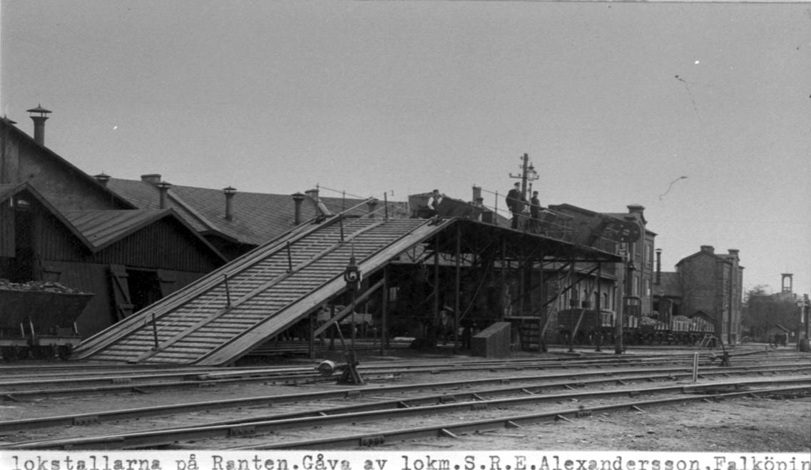 Falköping-Ranten. Bangården. Bakom kolbryggan lokstallarna på Ranten.