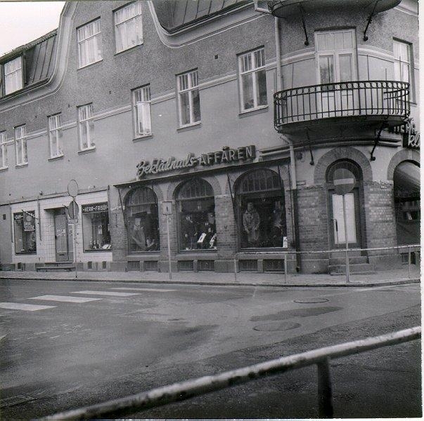 Beklädnadsaffären i hörnet Dotorpsgatan - Storgatan. T.v. Östmans frisersalong.