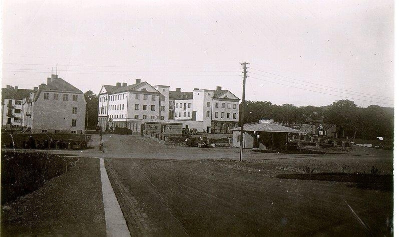 Stora Hotellet, Poststationen och bensinmacken. Området öster om hotellet år 1931.