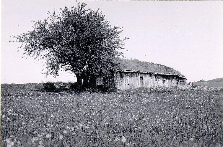 Soldat Åhs stuga under Skattegården, Tiarp. Stugan sammanbyggd med ladugården.