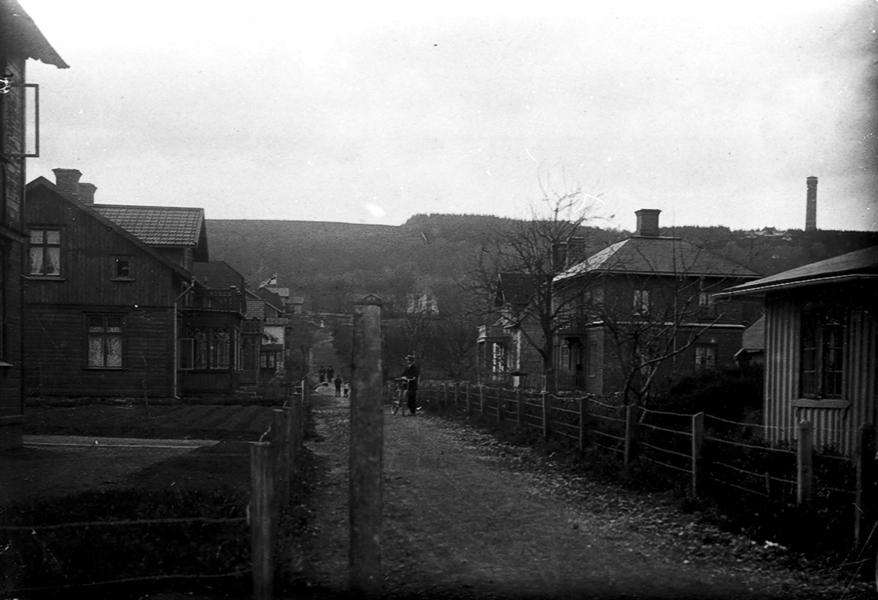 Villagatan från Danska vägen. Villagatan 3 och 4 t.h. Utsiktstornet.