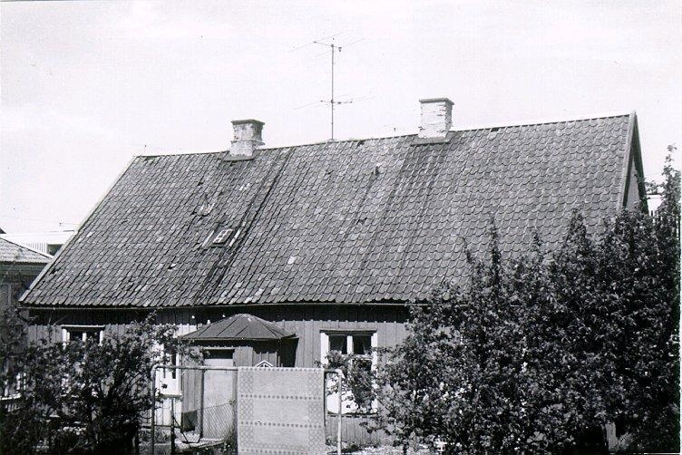 Kv. Tornväktaren, Storgatan 19, Silvénska huset Lagetomten. Gamla pedagogiken på 1880-talet. Stadens äldsta skolhus från 1800-talet. Prästgårdsgatan till vänster. Foto från kyrkparken i söder.