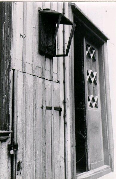 Kv. Gästgivaren, S:t Olofsgatan 3, Jouvins hotell. Dörr och lykta på gårdssidan av Jouvins hotell.