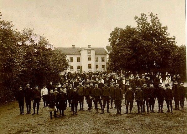 Elever samlade på skolgården under rektor Drakenbergs tid.
