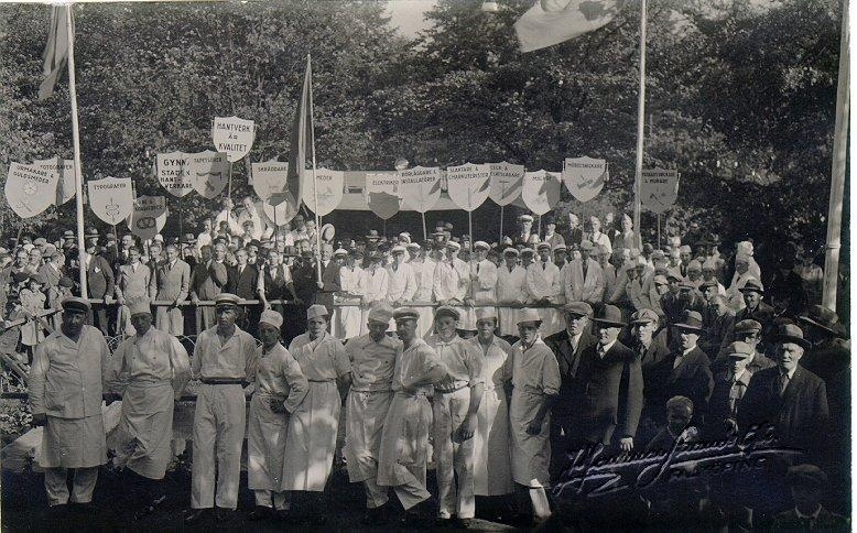 Hantverksmässa 2/9 1934. Stadens hantverkare efter defileringen S:t Olofsgatan - Storgatan - Dotorpsgatan - Odengatan - Botvidsgatan - S:t Olofsgatan.