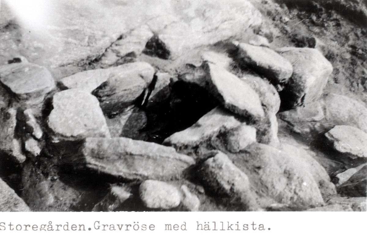 Norra Vånga sn. Storegården. Gravröse med hällkista.