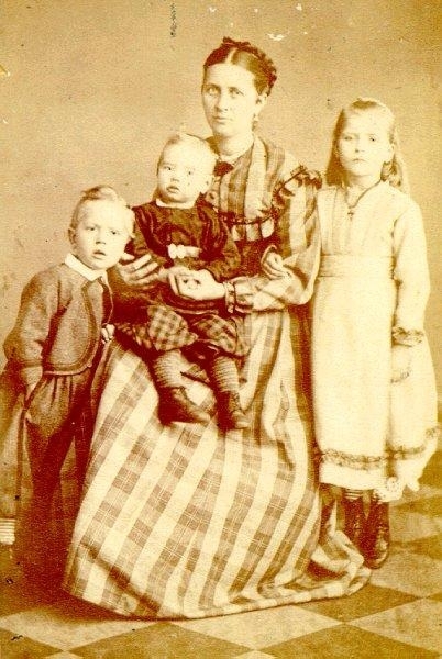 C.A. Lönnqvist första maka. Med barnen från vänster Herman, Hjalmar, Augusta.