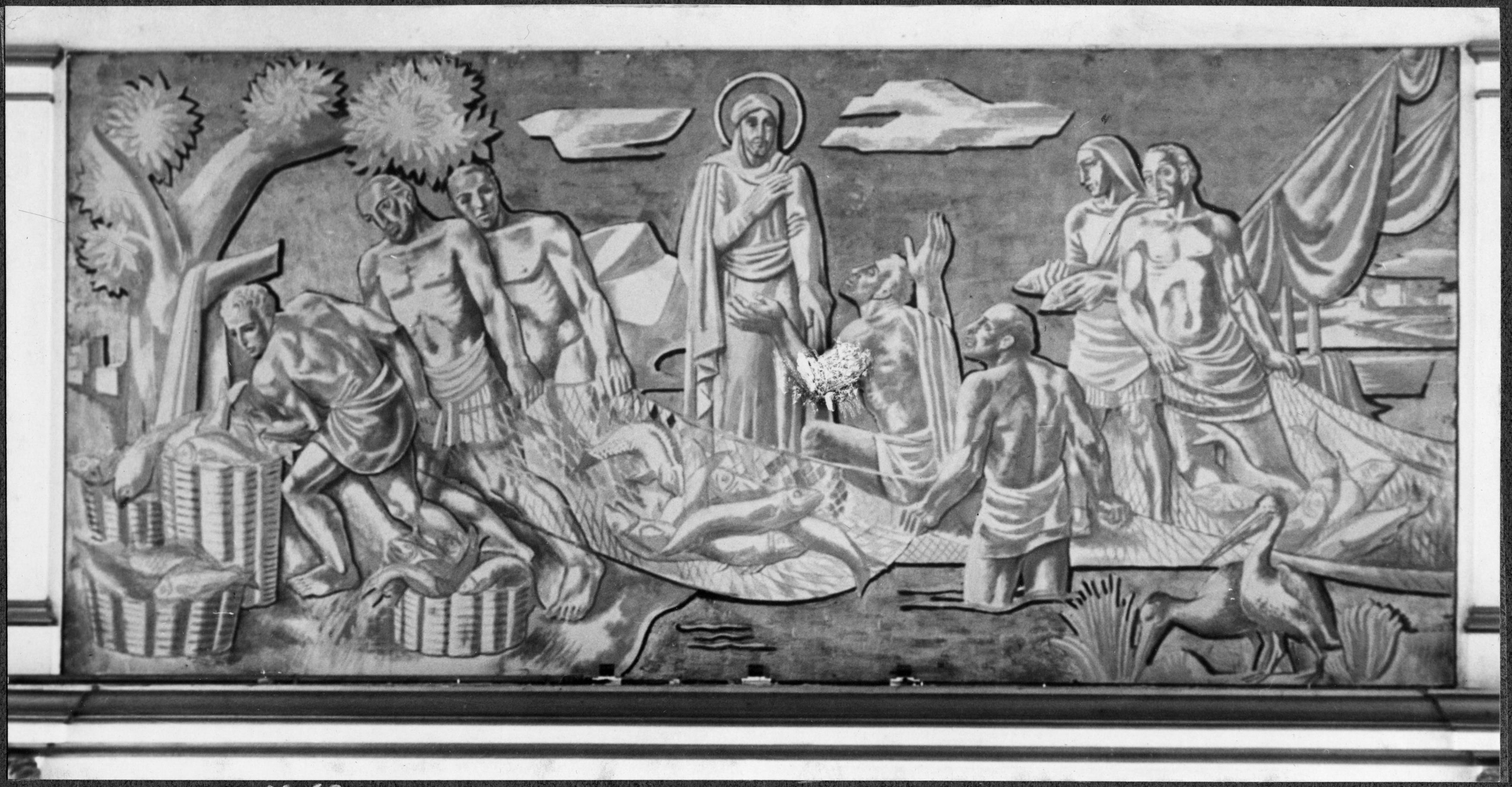 Pannåer till vindfånget i kyrkans västra del, Fiskafänget, av Gunnar Torhamn, 1928.