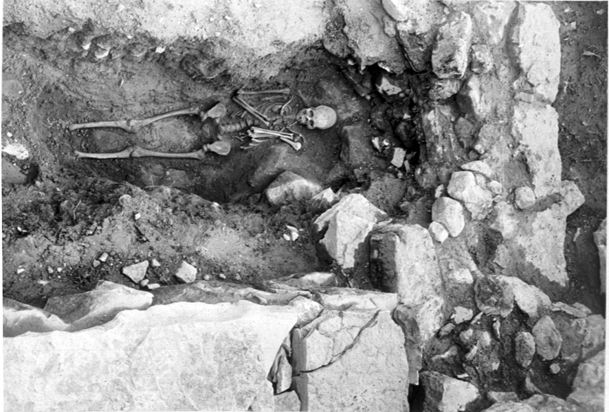 Gudhems kloster. Grav 29. Nordkoret. Foto mot v. Graven belägen mitt för altaret.