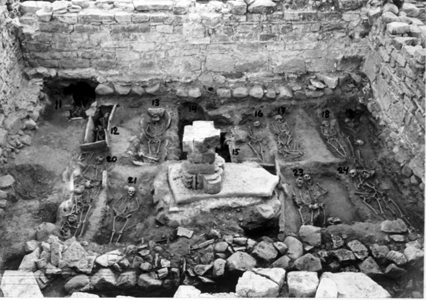 Gudhems kloster. Gravarna i Kapitelsalen. Foto mot v.