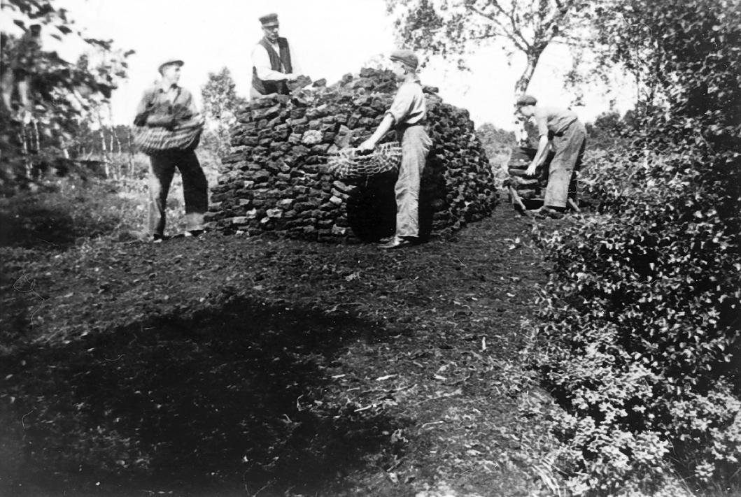 Torvtagning på Hjortemossen. Fridian med sönerna Arne och Åke samt Tore Nord