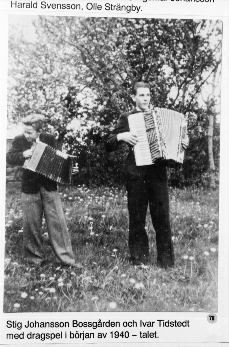 Stig Johansson Bossgården och Ivar Tidstedt med dragspel i början av1940-talet.