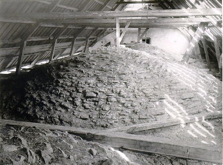 S:t Olofs kyrka. Restaureringen 1958-1961. Långhuset. Mellersta valvkupans överdel, sedd fr. väster.