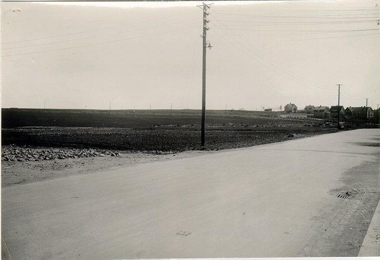 Medborgarplatsen bakom folkskolan åt öster, utstakad för en plantering. Botvidsgatan syns i längdriktningen, till vänster om belysningsstolpen Fredriksbergsgatan.