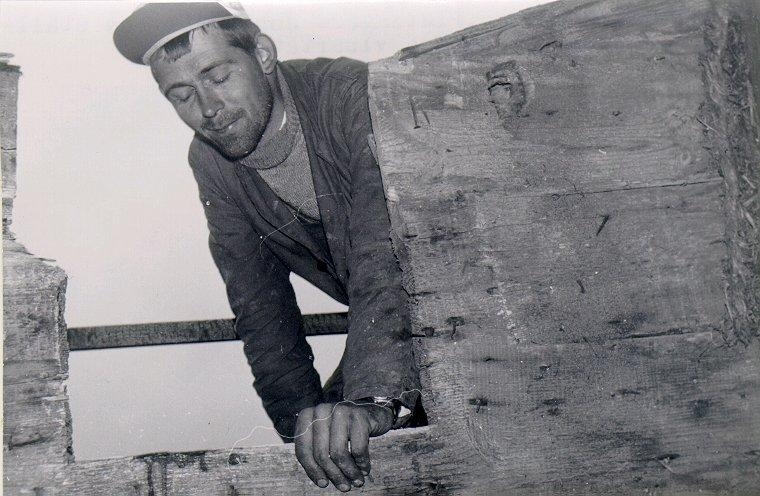 S:t Olofs kyrka. Plåtslagare Johansson på ställningen utanför västra visartavlans vägg.