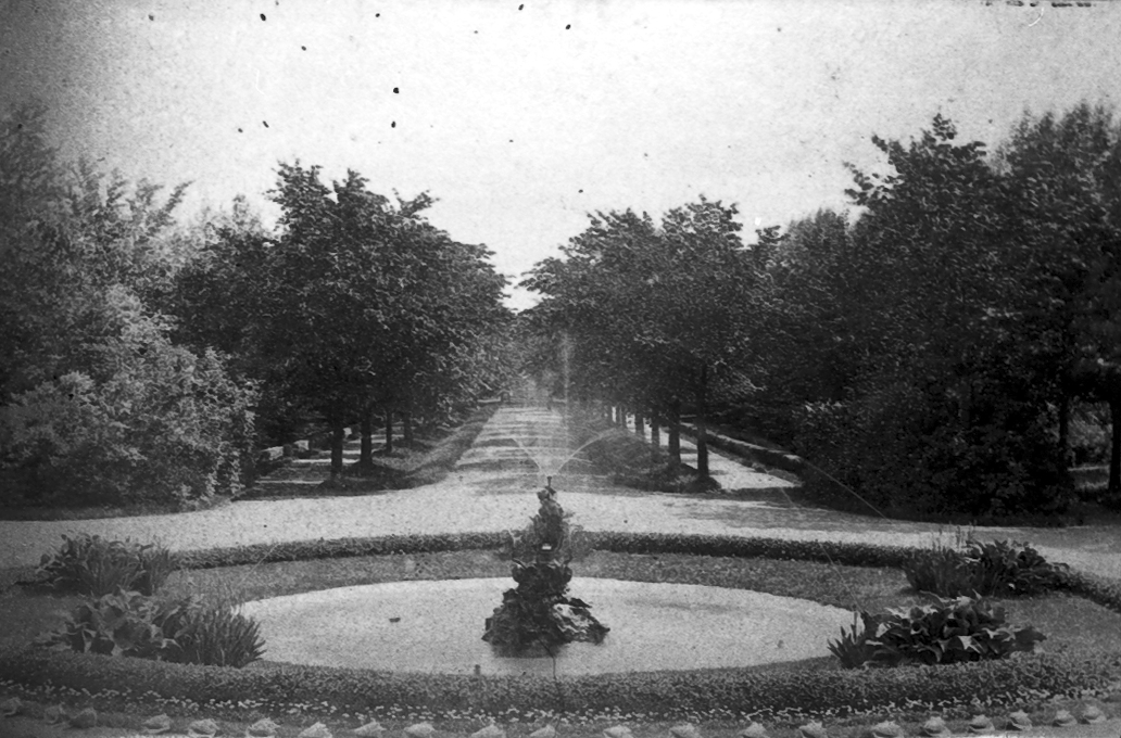 Allén med en fontän i förgrunden, Mössebergsparken.