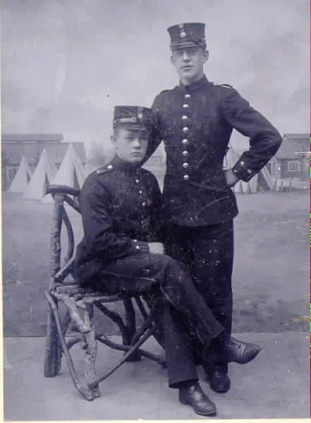Kamrer Zeta Andersson Falköping och grosshandlare Gösta Vesterling Chicago USA. Beväringar på Axvalla hed på 1890-talet.