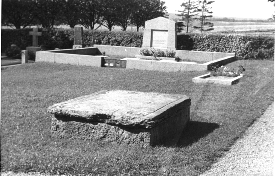 Gravhäll från 1600-talet på rekonstruerad tumba, Torbjörntorp.