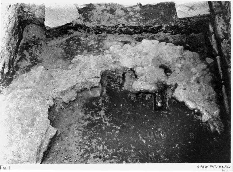 Norra absiden från väster. Vid pilen barnskelett.