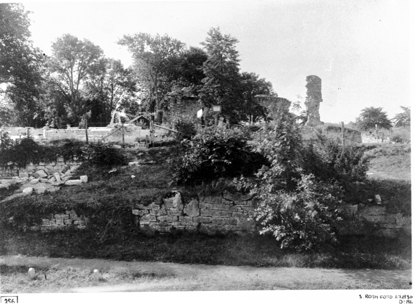 Östra delen av klostrets nordmur från norr. Före rummets utgrävning.