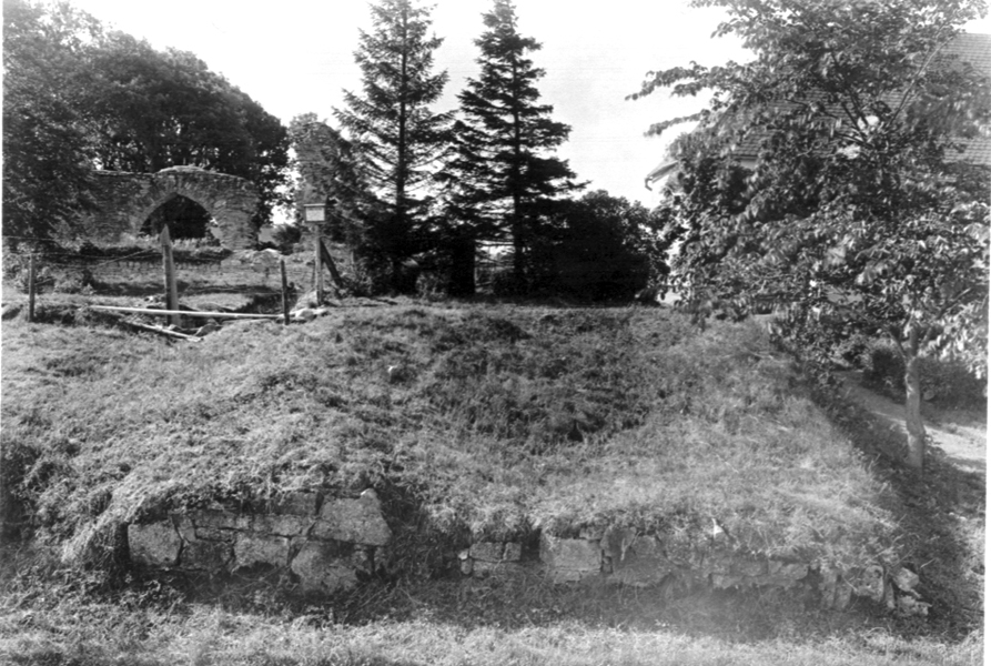 Klostret. Norra längan. Abbedissans hus. Före utgrävning. Foto mot S.