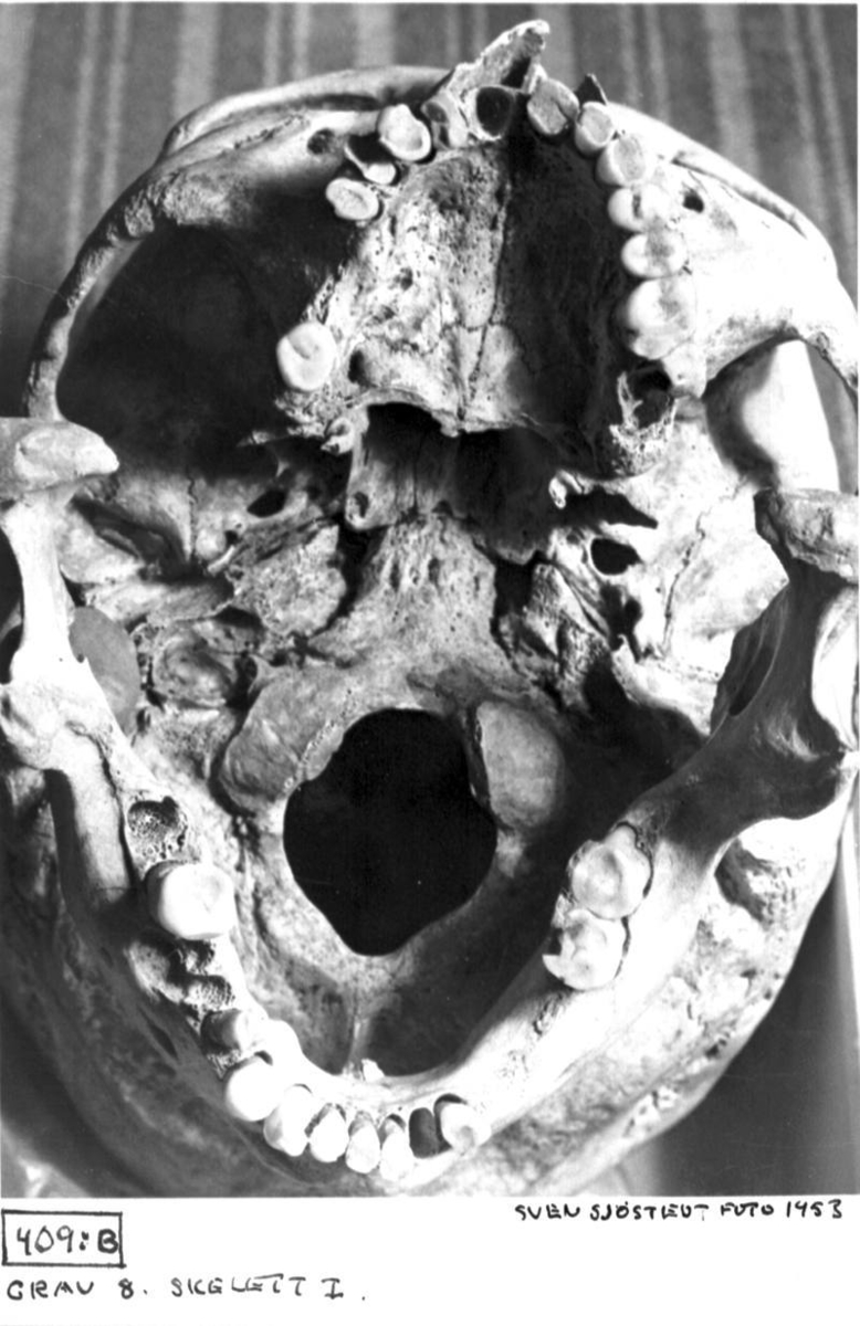 Grav 8. Skelett 1, kranium.