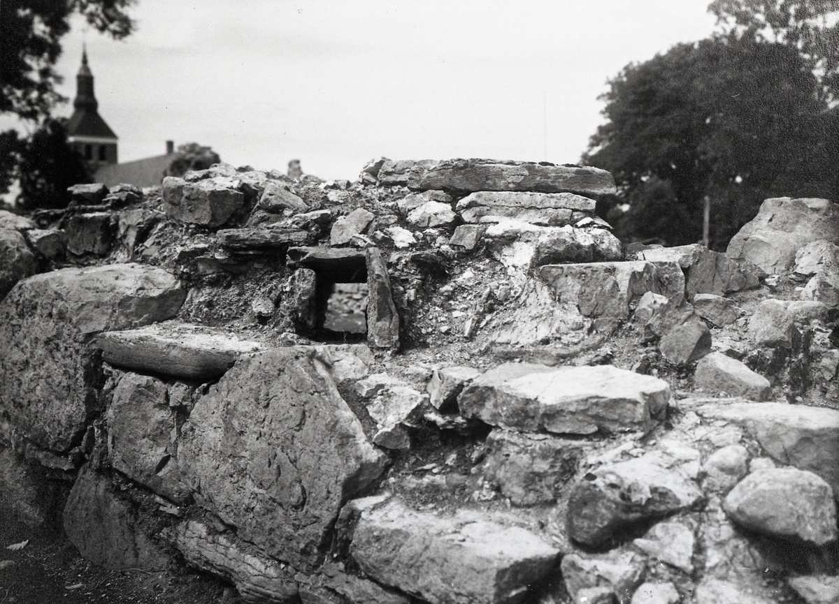 Östra huset. Murkanal I södra väggens östra del från sydost.