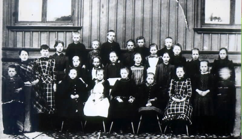 Skolklass, Köllerströms skola, Storgatan 2. Övre raden från vänster : 1. Erik Janzon, 3. Gunnar Wiik, 5. Gerhard Kappers, 7. Valdemar Janzon. Mellanraden: 6. Hildur Pettersson, dotter till Läroverksadjunkt Pettersson. Flickor, från höger, mellanraden : 4. Valborg Sundberg, 6. Ingrid Sundberg, två flickor i rutiga klänningar: t.h. Elna Helander, t.v. Tullie Helander g. Koch. Nedre raden : 1. Gustaf Janzon, 3. dotter till polis Högberg, 4. Hilma Ericson.
