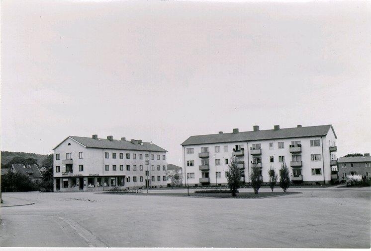 S:t Sigfridsplatsen mitt i bilden. Foto från Falegatan. Från vänster S:t Sigfridsgatan 42, Wetterlinsgatan 2.