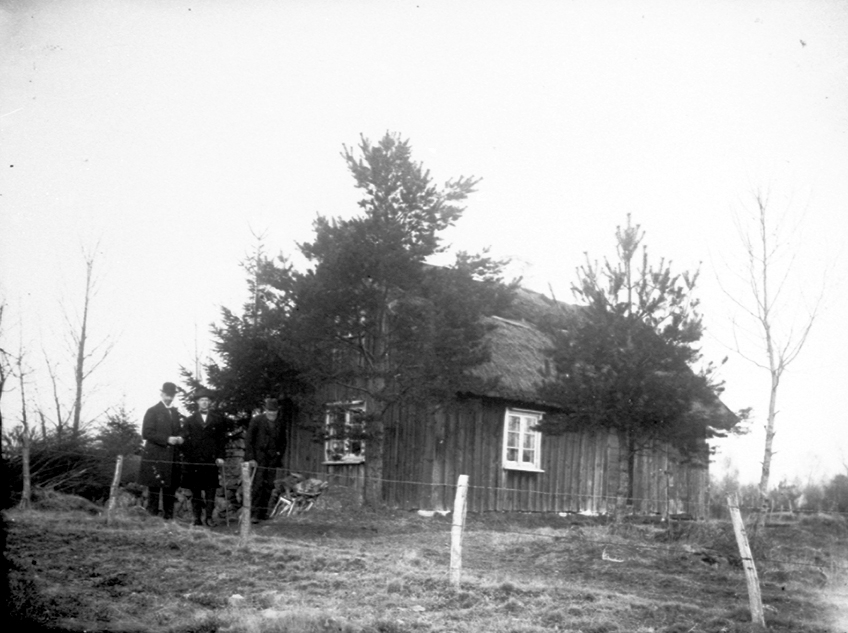 "Majen"s stuga på Hallebo utmark, Sörby. Han hette August Svensson (t.h. i bild).