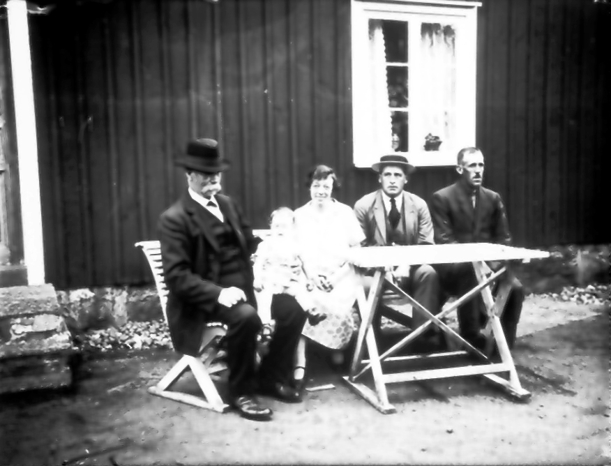 Hos Fälts i Bosgården. August Edvard F, Ture F med fru och dotter och Karl F.