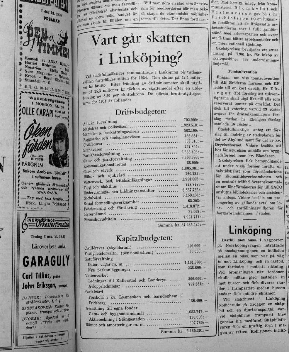 Klipp ur Östgöten i Linköping på 1950-talet. Vart går skatten i Linköping?...