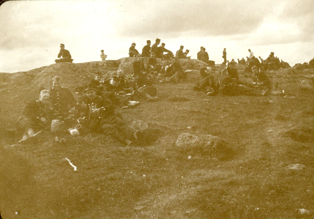 Titel: Rast under pågående fältövning. Kalmar regemente.