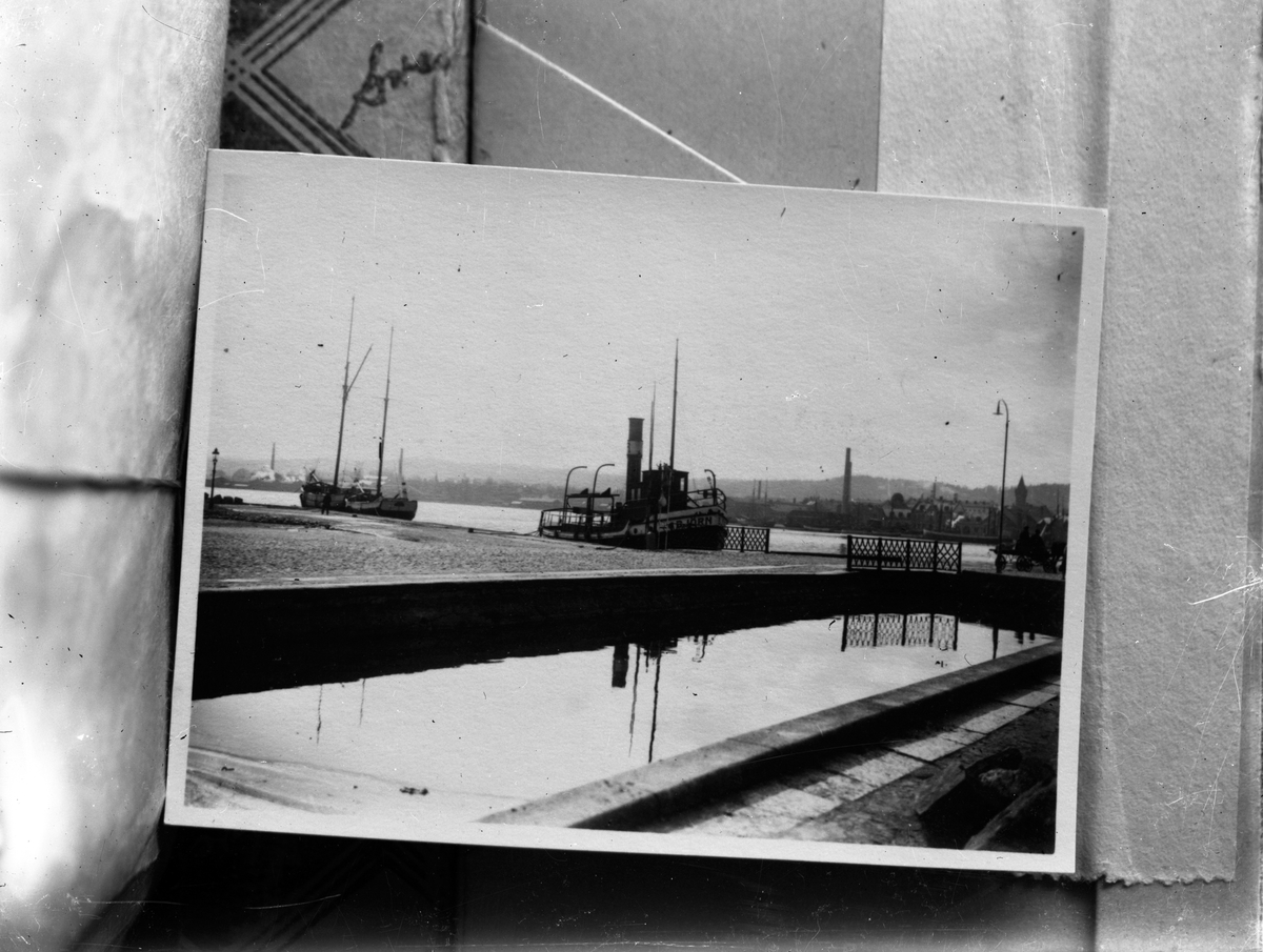 En avfotograferad bild. Båten "Björn" ligger förtöjd vid kajen i Munksjön i Jönköping.