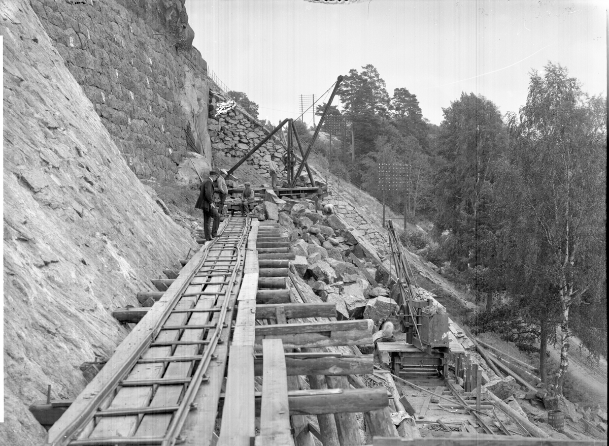 Förstärknigsarbeten på Storängsbanken vid Graversfors, strax norr om Åby, mellan Katrineholm och Norrköping.