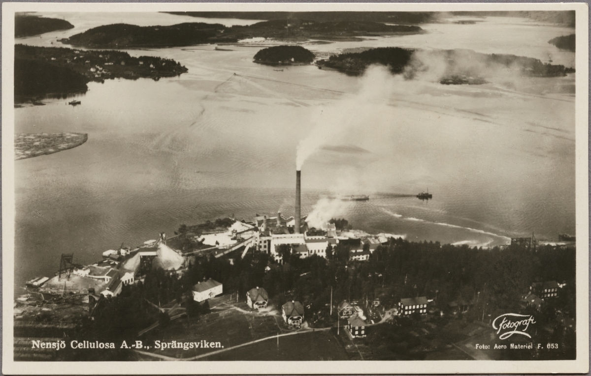 Titel: Flygvy över Nänsjö fabriksområde vid Ångermanälven.