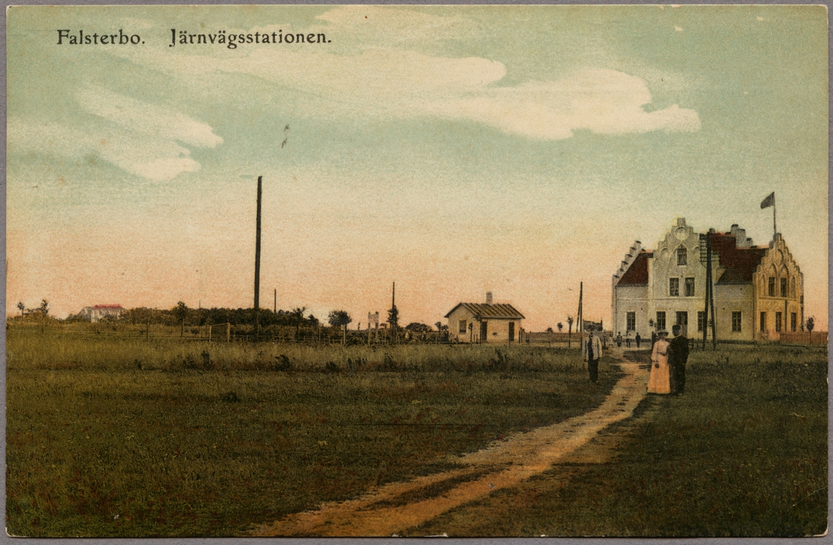 Järnvägsstationen i Falsterbo, handkolorerat vykort.