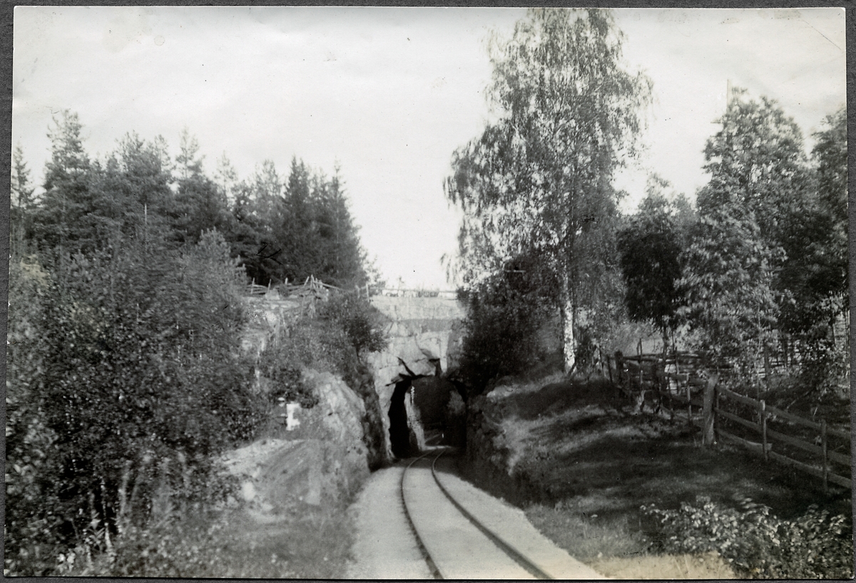 Titel: Tunnel vid Överum med vägövergång på linjen Åtvidaberg - Västervik år 1910.