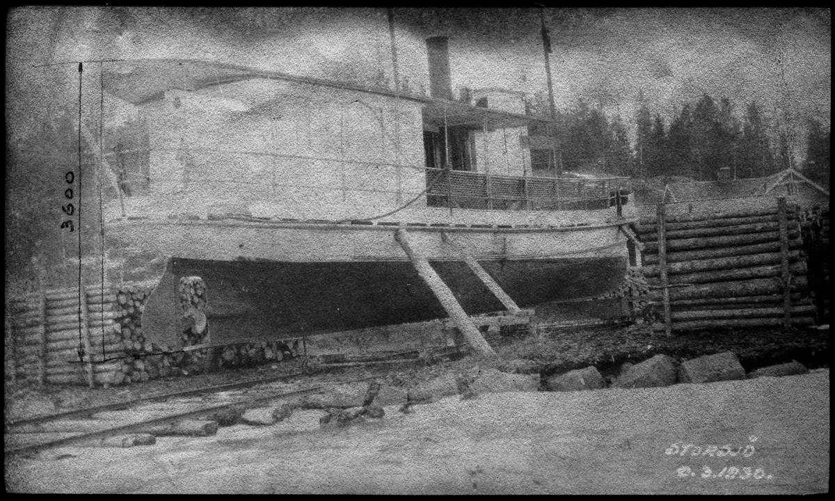 Norsholm - Västervik - Hultsfreds Järnvägars ångbåt "Kurir" upptagen för översyn. Den trafikerade sträckan Storsjö - Edsbruk.