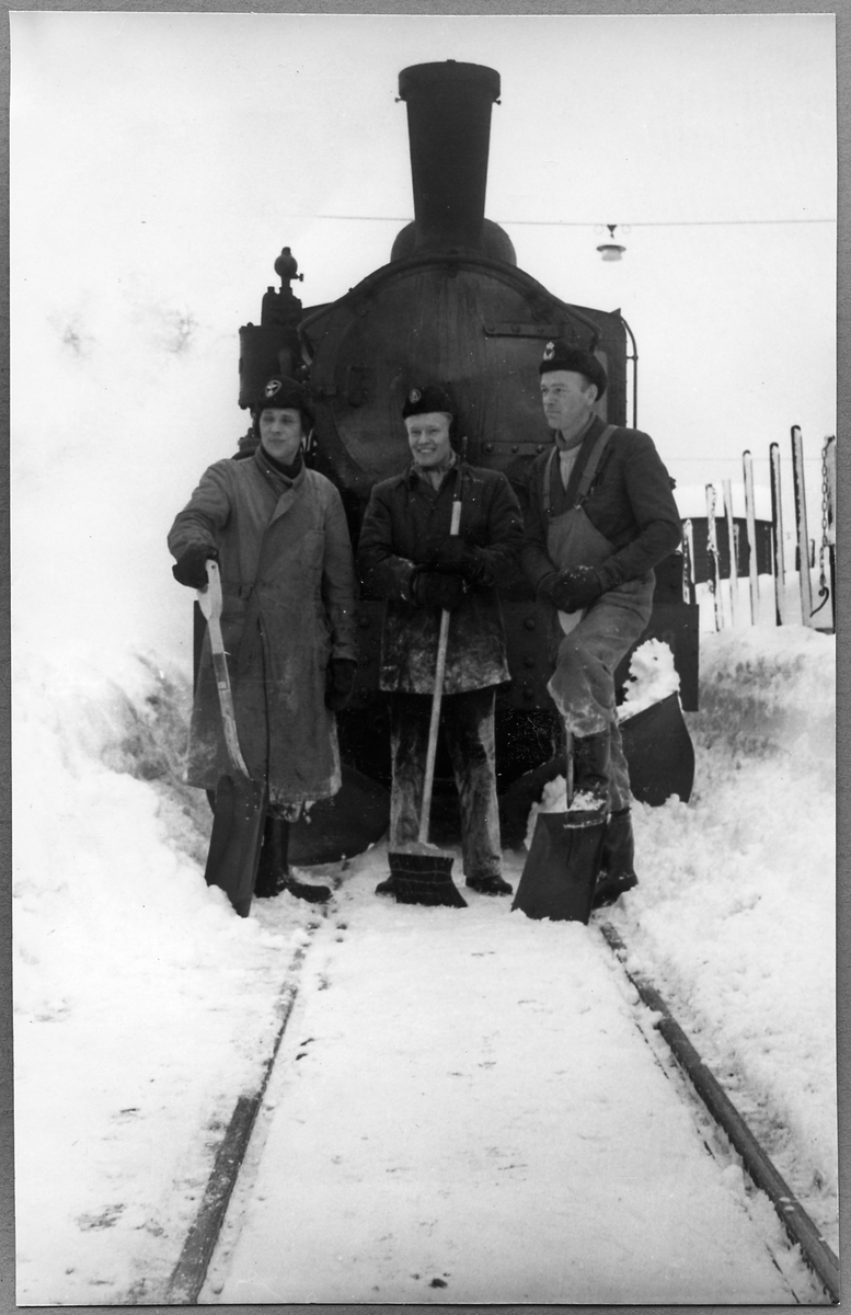 Snöröjning vid Västervik station. Statens Järnvägar, SJ L18p 3148.