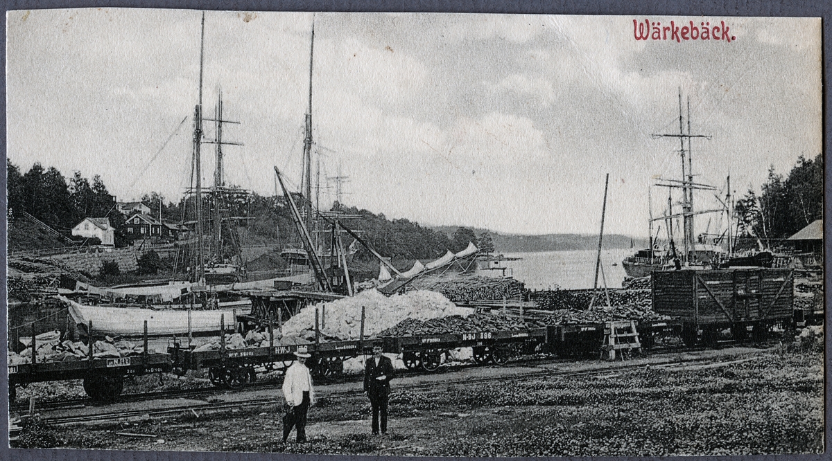 Verkebäck hamn med godsvagnar från Hultsfred - Västerviks Järnväg, HWJ och Norsholm - Bersbo Järnväg NBJ. NBJ L 396.