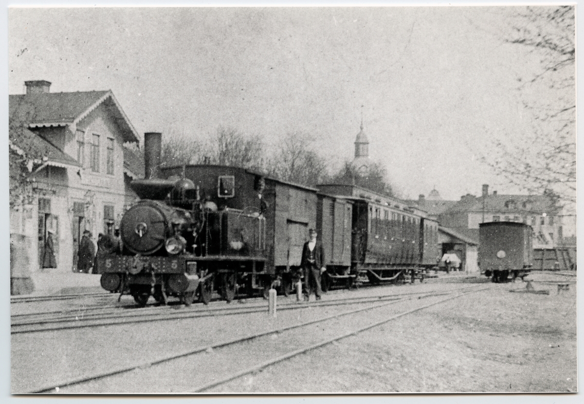 Fågelsta-Vadstena-Ödeshögs Järnväg, FVÖJ lok 5 "Femman" vid Vadstena station.