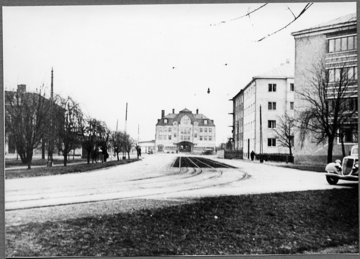 Titel: Norrköping i närheten av Östra stationen. Till vänster i bild skymtar gamla stationshuset.