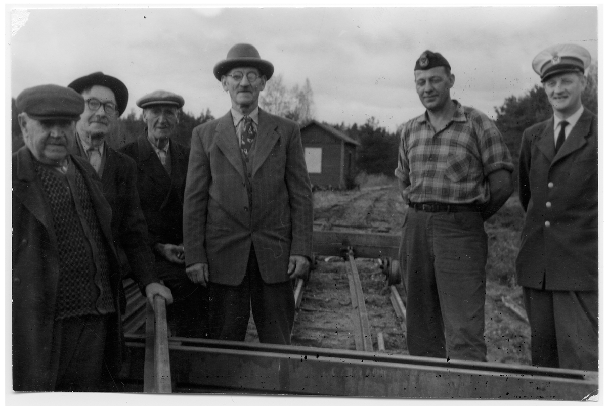 Titel: Järnvägs personal vid rivning av Vimmerby - Spångenäs Järnväg.