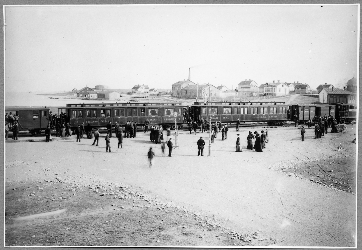Mönsterås station. Persontåget draget av Mönsterås Järnväg, MÅJ lok 1.