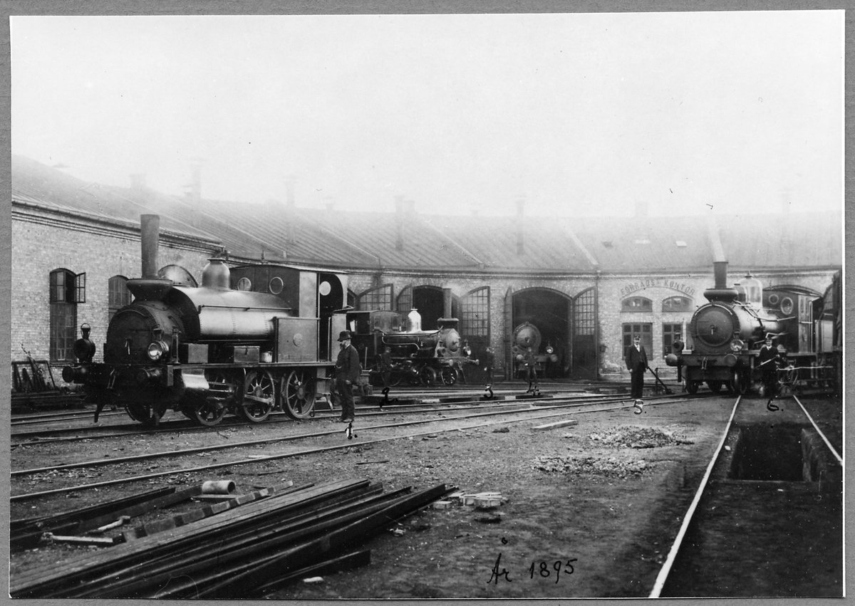 Halmstad - Nässjö - Järnväg, HNJ lokstation i Halmstad. Loken är: HNJ Bb 3 "ÅTTERÅS", HNJ C 9, HNJ Ea1 11, HNJ Ea1 12.