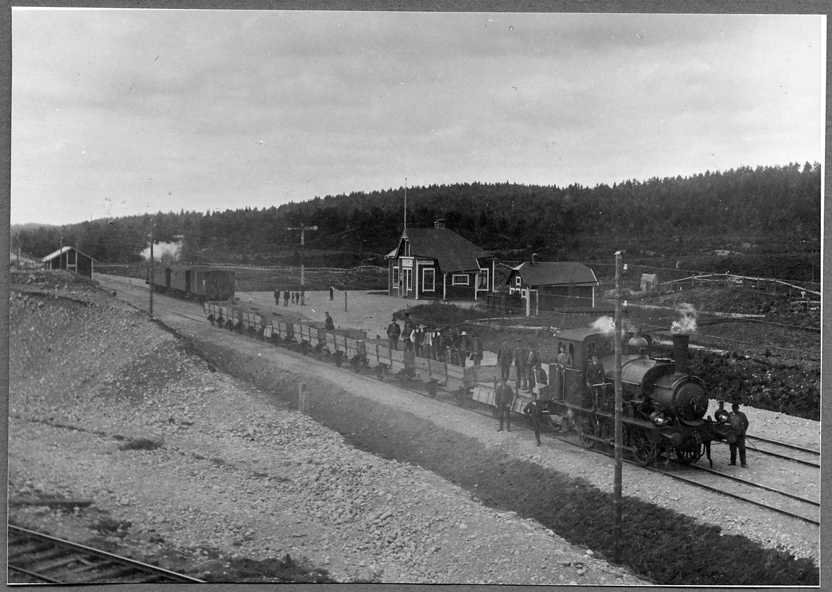 Varberg - Ätrans Järnväg, WbÄJ lok 2 med personal och gruståg vid Gällared station.