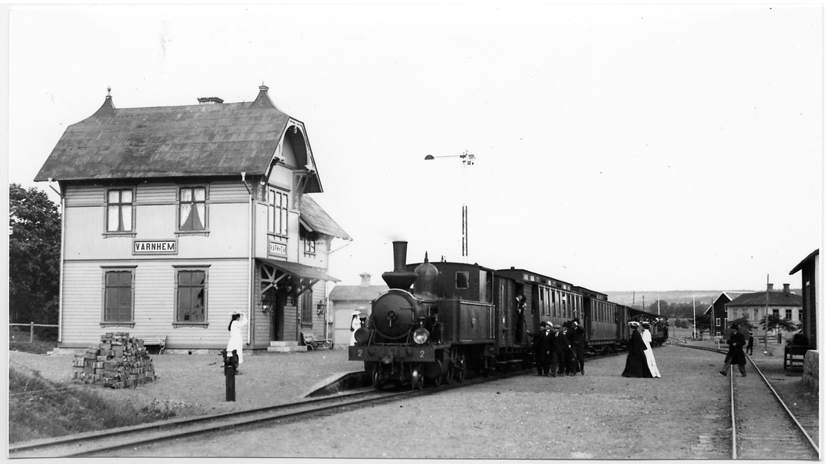 Skövde-Axvalls Järnväg, SAJ lok 2 med persontåg vid Varnhems järnvägsstation.