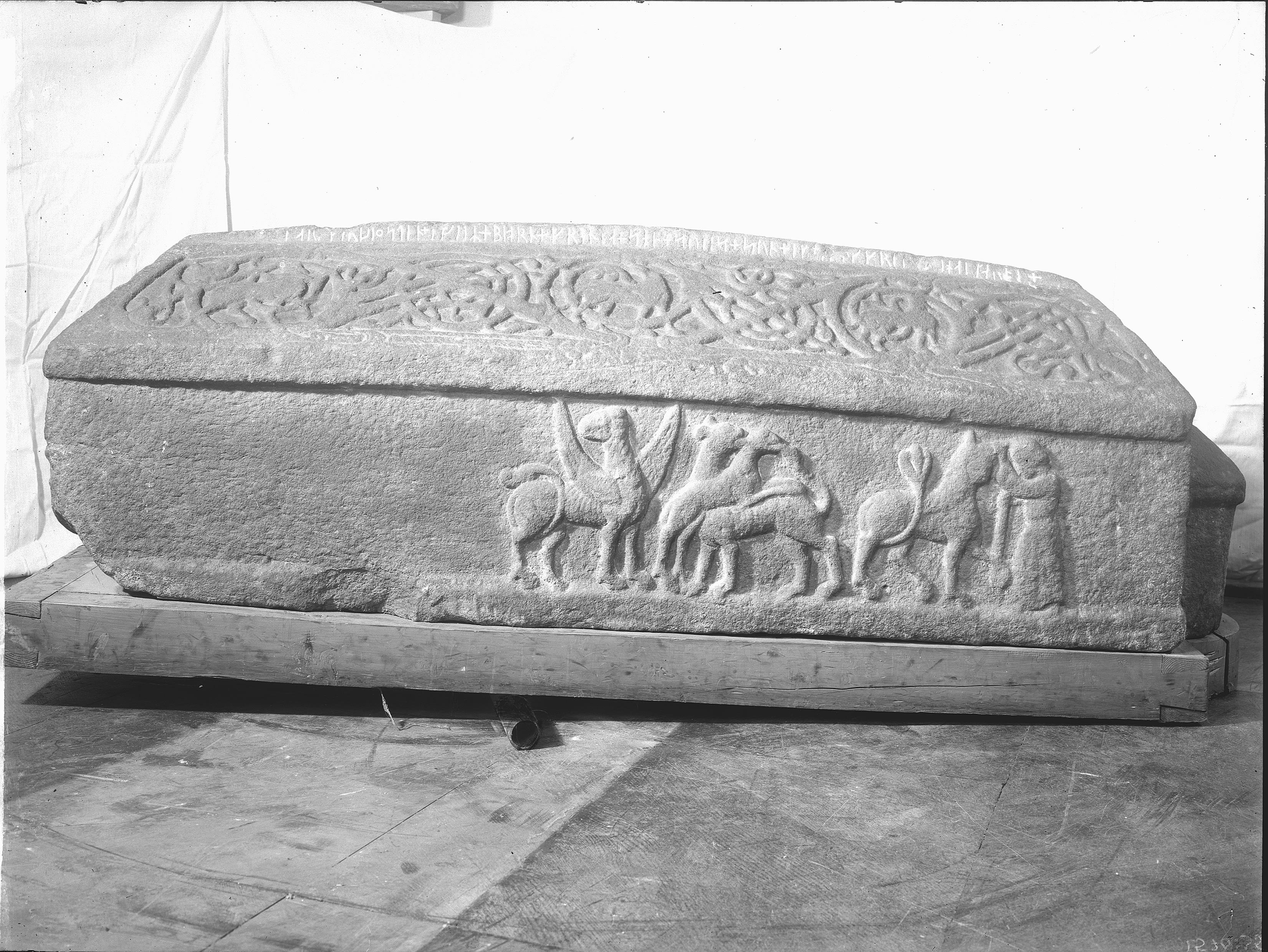 Botkyrkamonumentet. Gravvård av sandsten med grundform av en kyrka. 1100-talets första hälft.